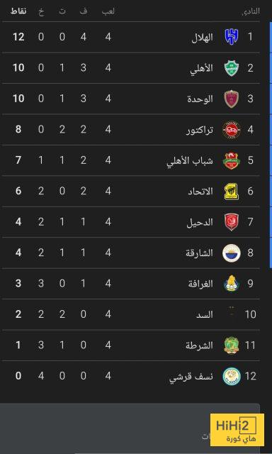 الأهلي بـ 10 نقاط من أصل 12 ، سجل 12 هدفًا واستقبلت شباكه 5 أخرين .