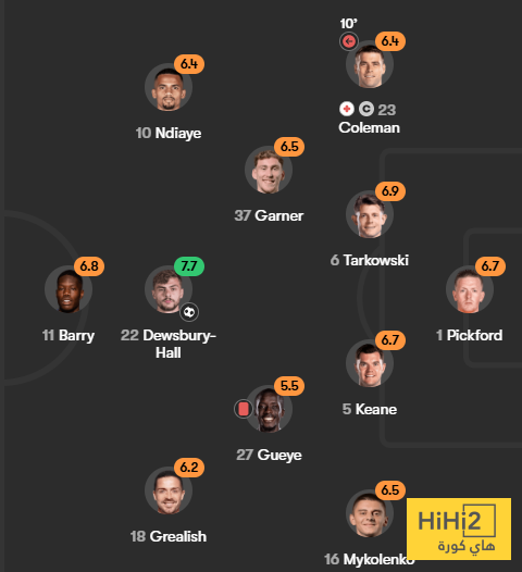تقييم لاعبو ايفرتون في الشوط الاول :