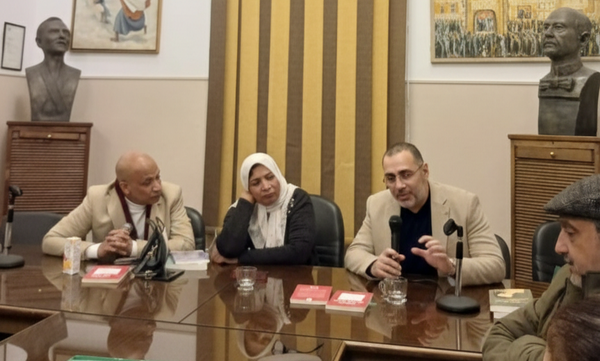 جاء ذلك في حضور الكاتب الكبير عبده الزراع عضو مجلس إدارة اتحاد الكتاب، والكاتب الكندي من أصل سوري أدهم سراي الدين،  والشاعر سيد يونس والكاتبة سعاد سليمان والقاص الشاب عمار بدر، إصافة إلى مجموعة من شباب الجامعات.