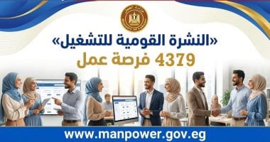 وزارة العمل: 4379 فرصة عمل جديدة فى 12 محافظة ضمن نشرة التوظيف